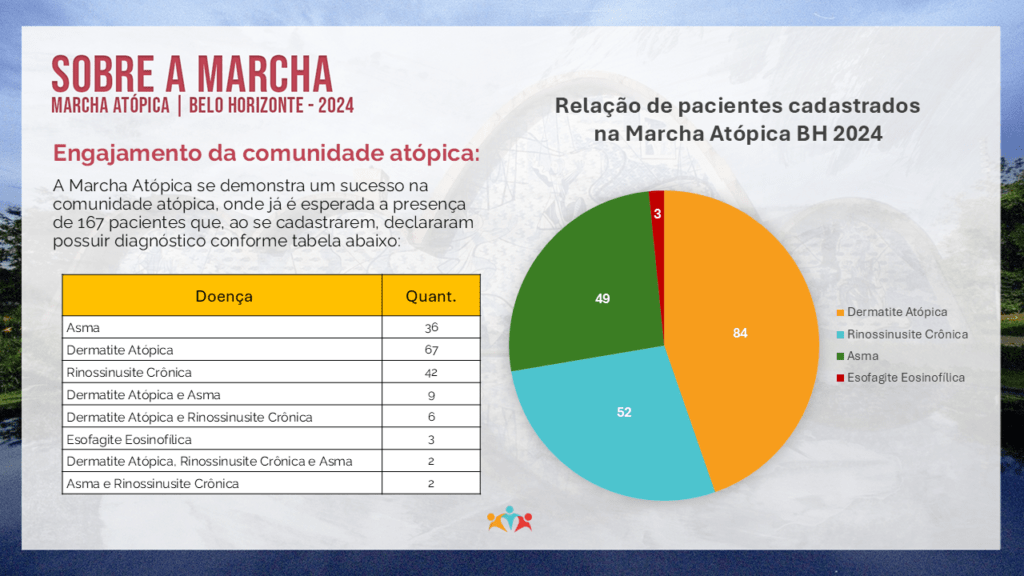 Neste cenário, já temos confirmados (até o fechamento desta matéria), 400 participantes inscritos na Marcha, sendo eles 167 atópicos com as seguintes condições: