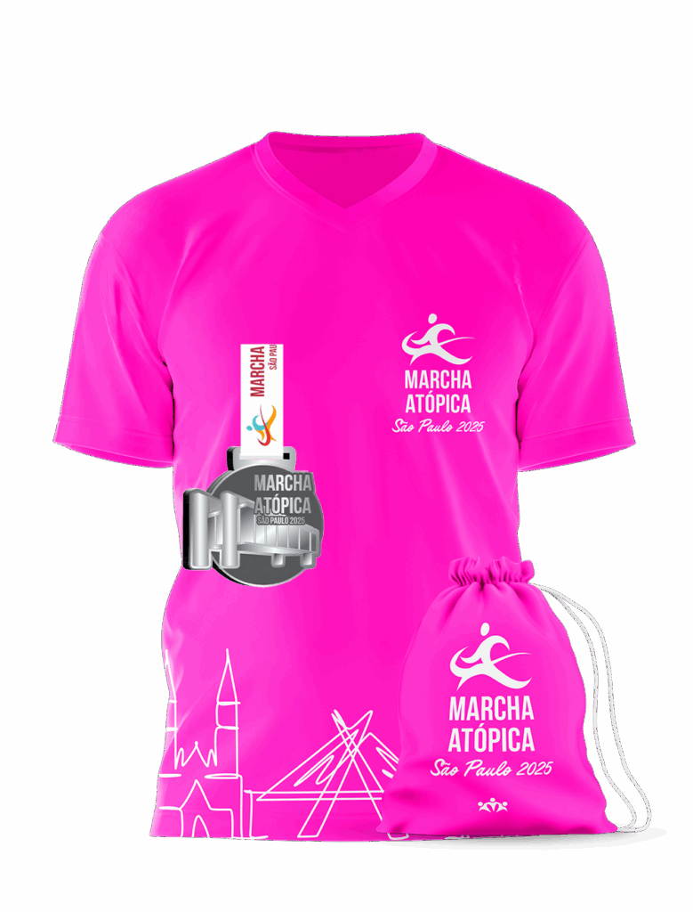 Garanta já seu kit e venha fazer parte da Marcha Atópica, o maior evento de conscientização sobre doenças alérgicas atópicas do Brasil. Ao se inscrever, você receberá a camiseta oficial do evento, uma sacochila personalizada, número de peito com chip, medalha de participação, além do lanche pós-prova e eventuais sorteios que acontecerão no dia!